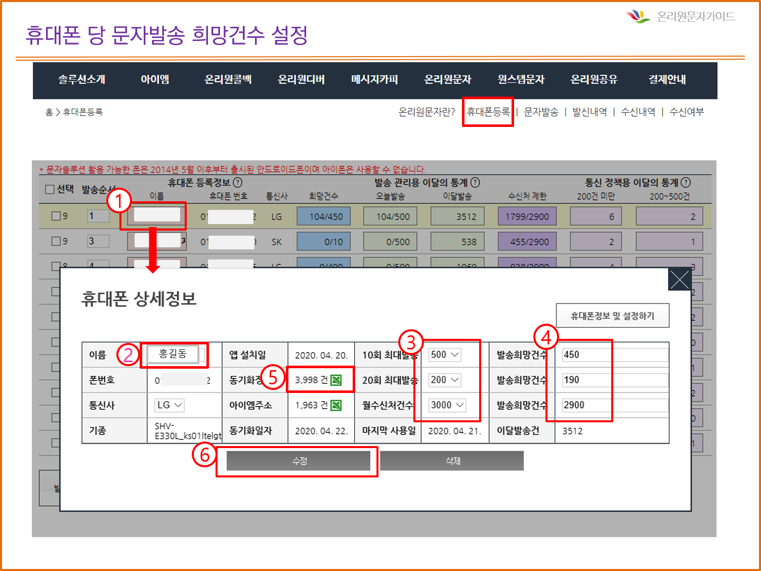 문자 [온리원문자] 발송건수 및 수신처수 직접 설정 2020-04-22 46715